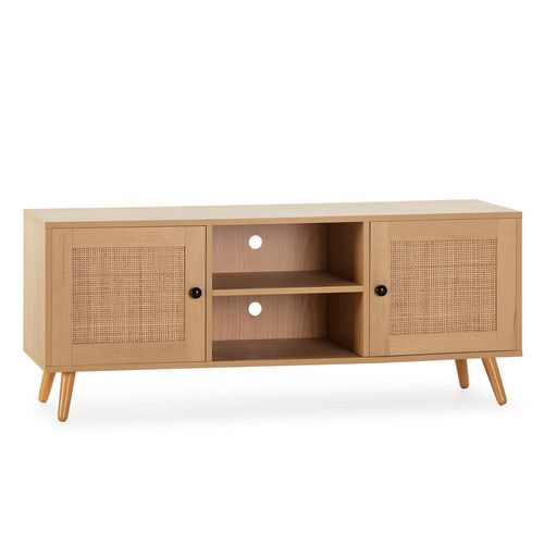 Meuble tv Cruz 2 portes couleur chêne avec rotin naturel, 120 cm