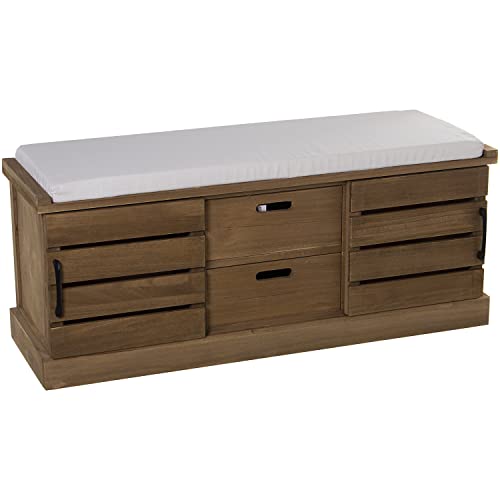 DRW Meuble Banquette avec 2 Portes et 2 tiroirs en Bois Paulownia Naturel et Blanc 104 x 34 x 45 cm, estandar