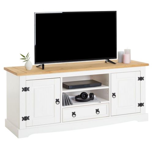 Meuble TV TEQUILA, 2 portes et 1 tiroir, en pin massif lasuré blanc et brun blanc / marron 140 x 61 x 47 cm