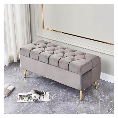 Pouf Pliant à Chaussures avec Rangement dissimulé et revêtement rembourré - Repose-Pieds Moderne Confortable pour Chambre,Change de Chaussures,Meuble décoratif (Gris,60 x 40 45 cm