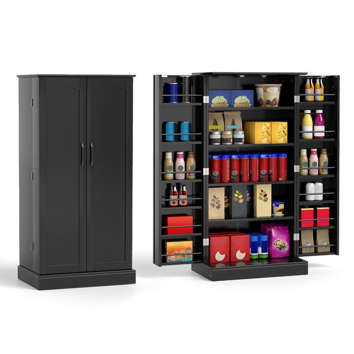 GIANTEX Buffet de Cuisine- 2 Portes et 17 Étagères dont 6 Réglables- Meuble de Rangement- 60 x 40 x 120 cm- Style Scandinave- Noir