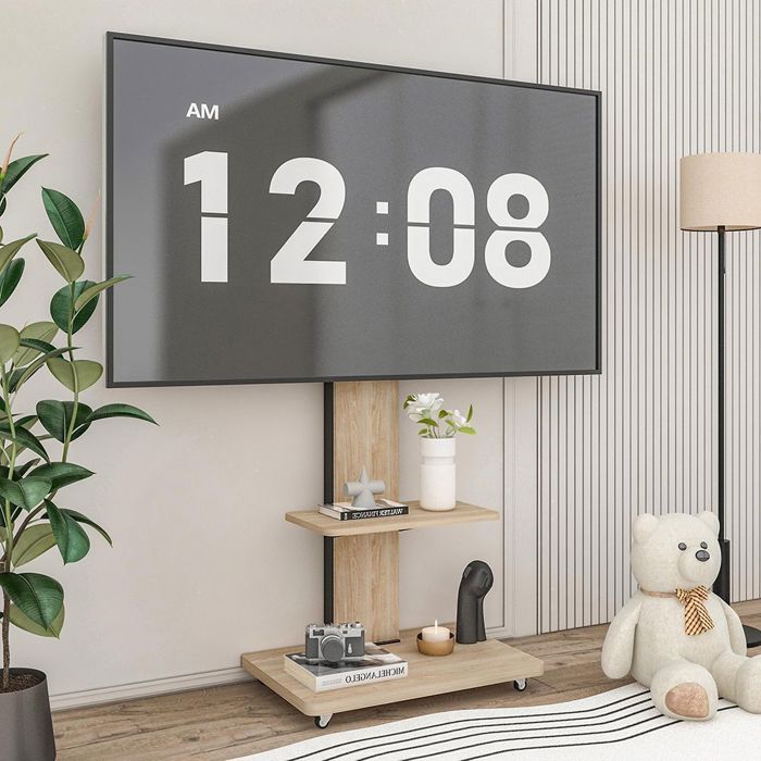 Meuble tv mobile 60x40 cm réglable en hauteur avec roulettes et rangement, pour écran 32 à 75 pouces