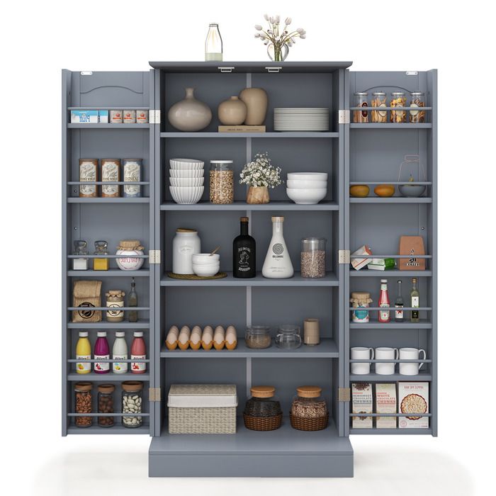 GIANTEX Buffet de Cuisine- 2 Portes et 17 Étagères dont 6 Réglables- Meuble de Rangement- 60 x 40 x 120 cm- Style Scandinave- Gris