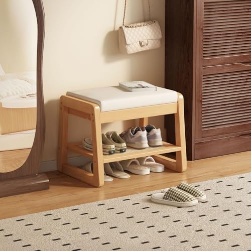 Banc à Chaussures Rembourré, Banc Entree Chaussures, Meuble Chaussure avec Assise, Coussin Moelleux Style Nordique, Banc D'entrée avec Coussin, pour Entrée, Couloir,2 Layers a,60×30×44cm