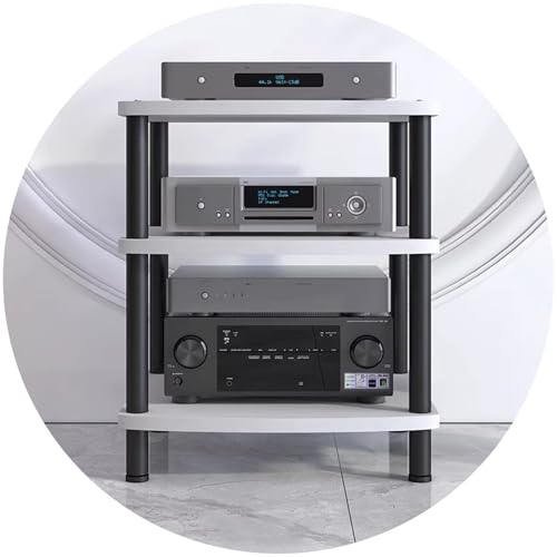 Rack Audio À Plusieurs Niveaux Équipement Home Cinéma Meuble pour Amplificateur Domestique Convient Aux Composants Multimédia Platines Vinyles Lecteurs DVD(Blanc,60 * 54 * 89cm(4Tier))