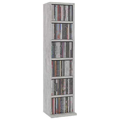 Tomostar Étagère Colonne à CD/DVD, Meuble de Rangement CD et DVD Armoire à CD Étagère Bibliothèque Gris béton 21x20x88 cm Bois d'ingénierie