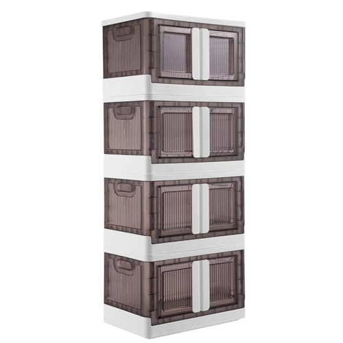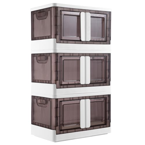 BAKAJI Boîte de rangement en plastique double système d'ouverture, conteneur pliable gain de place avec roues, meuble à chaussures empilable, pour vêtements, jouets, livres, DVD, capacité 45 litres