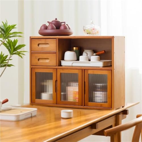 IROEJT Meuble de Cuisine autoportant en Bambou avec étagère de Rangement pour Vaisselle, Bols, épices et Tasses à thé - Vitrine pour Salon - Durable,Brown CH