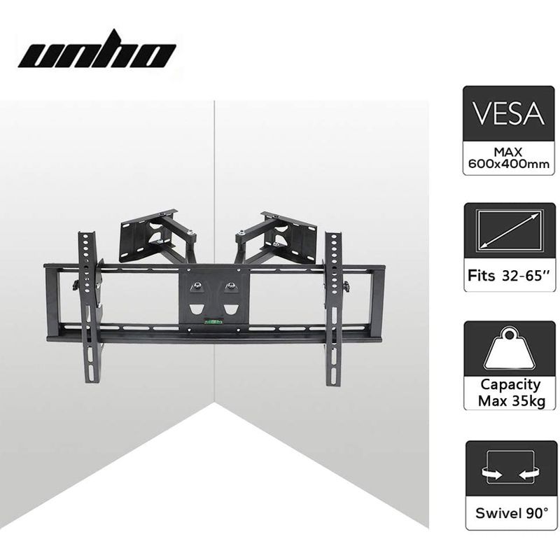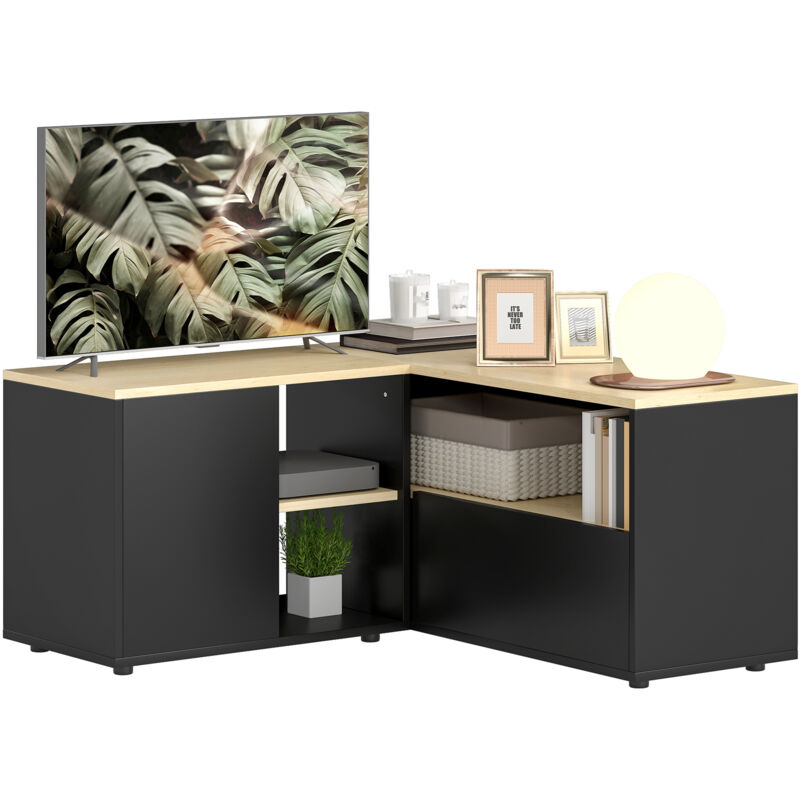 Gecheer Meuble TV d'angle 1 Niveau pour 32-65 Pouces Noir, Support de Télévision pour Salon, Chambre