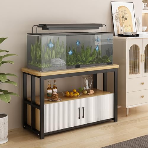 Meuble Aquarium, Design à 2 Niveaux, Support d'Aquarium en Métal avec Armoire de Rangement, Grande Capacité de Charge, avec Portes et Étagères, Idéal for Salon, Restaurant(Black,60x40cm/23.6x15.7in)