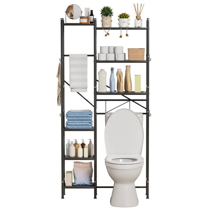 Meuble WC Noir - Étagère au-dessus des Toilettes - 4 Étagères Réglables - Design Industriel Moderne - Salle de Bain 173x60x24 cm