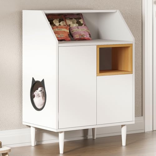 Bac à litière pour chat - 2 niveaux - Avec espace de rangement - Meuble de rangement antidérapant pour chats, appartement, salon, chambre à coucher, balcon et étude à domicile