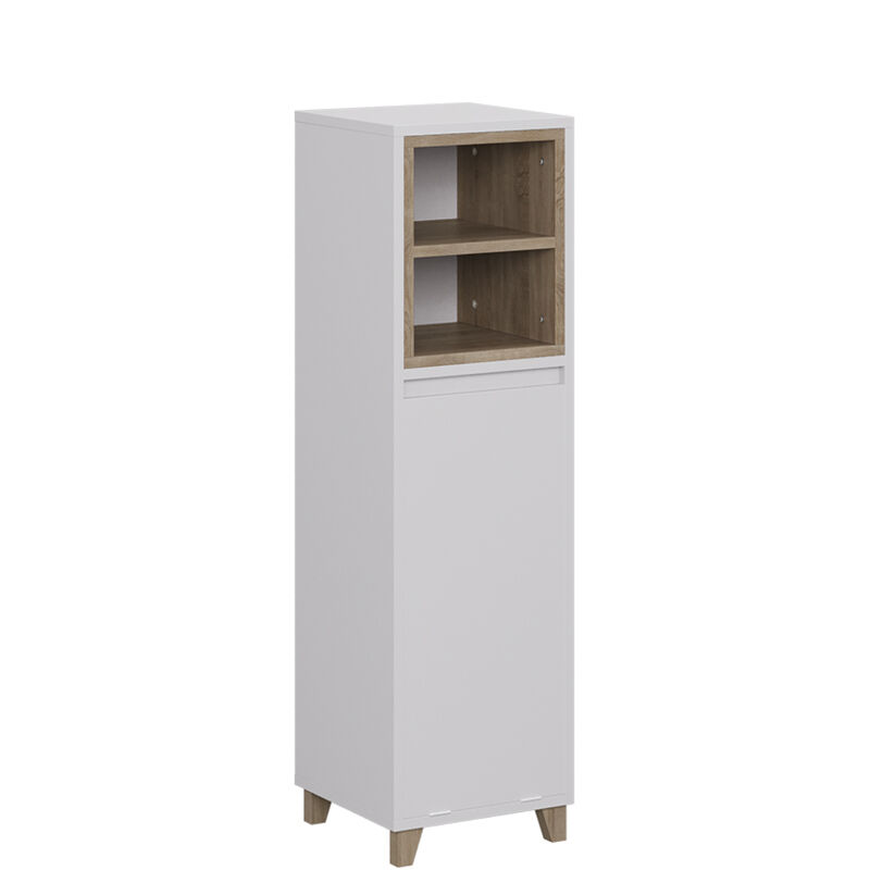 Meuble salle de bain Elnor, blanc/chêne, 30x105cm avec panier à linge rabattable, Vicco