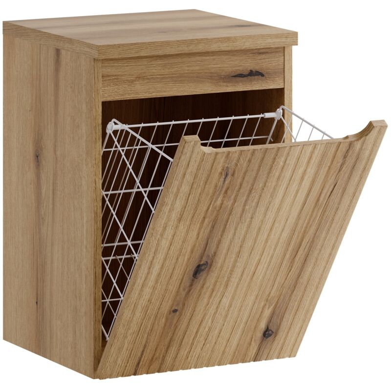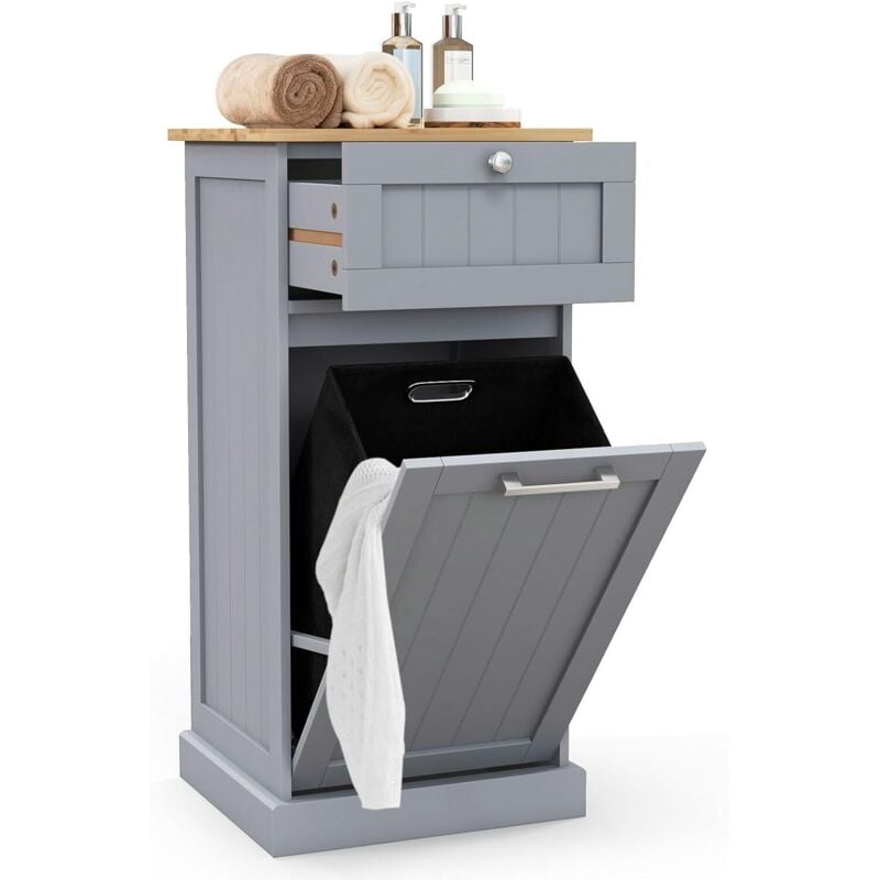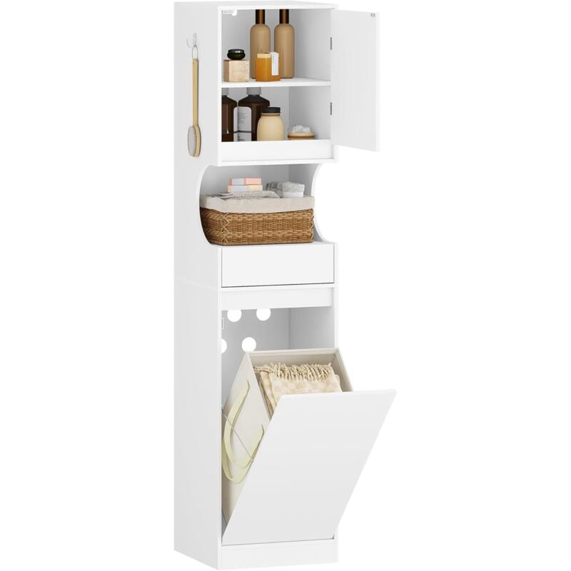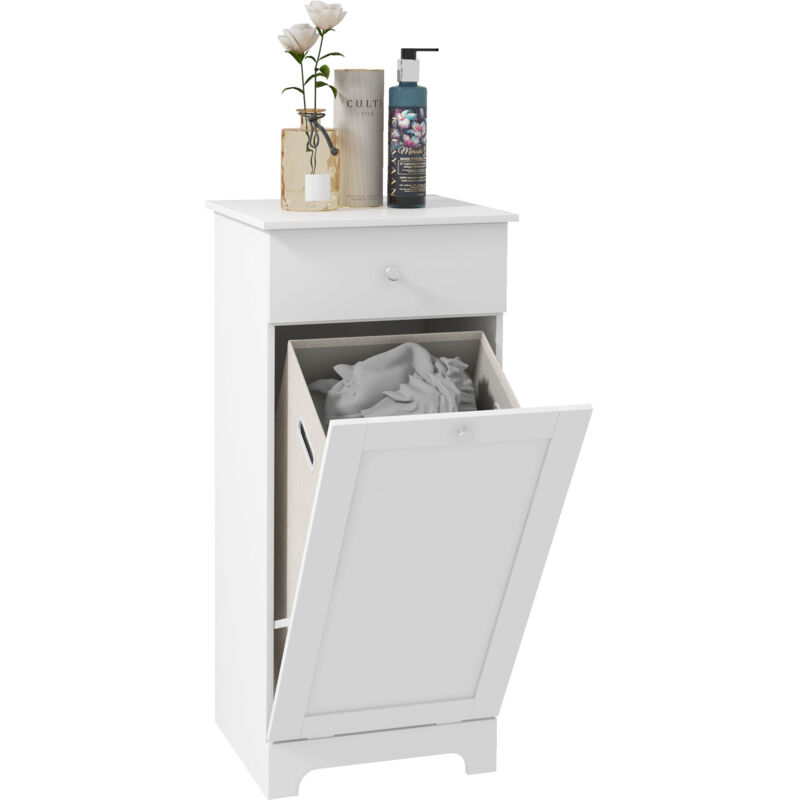 COSTWAY Meuble Salle de Bain avec Tiroir, Meuble Linge Placard 38L, Panier à Linge Amovible, Porte Basculante, Placard Rangement pour Salle de Bain,