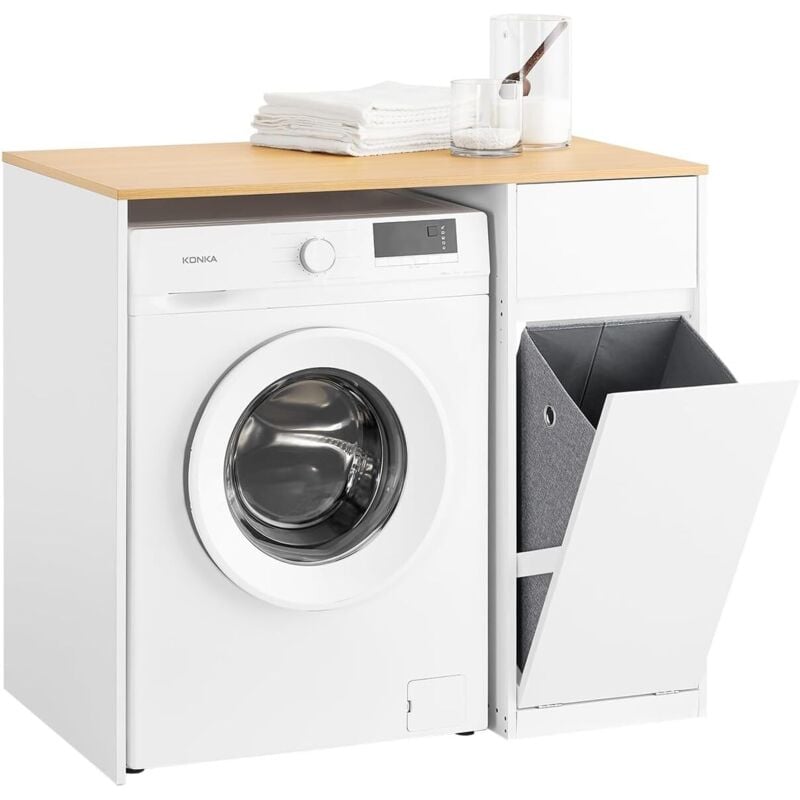 Sobuy – Meuble machine à laver avec tiroir et panier à linge – Armoire en bois blanc 100 x 60 x 90 cm – Capacité 49 kg – BZR217WN