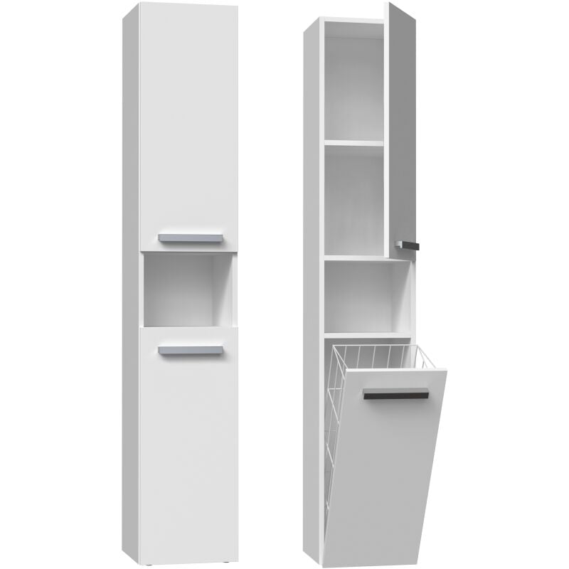 Hucoco - yana - Meuble salle de bain avec panier à linge - 31x30x174 cm - Colonne rangement sdb Blanc brillant