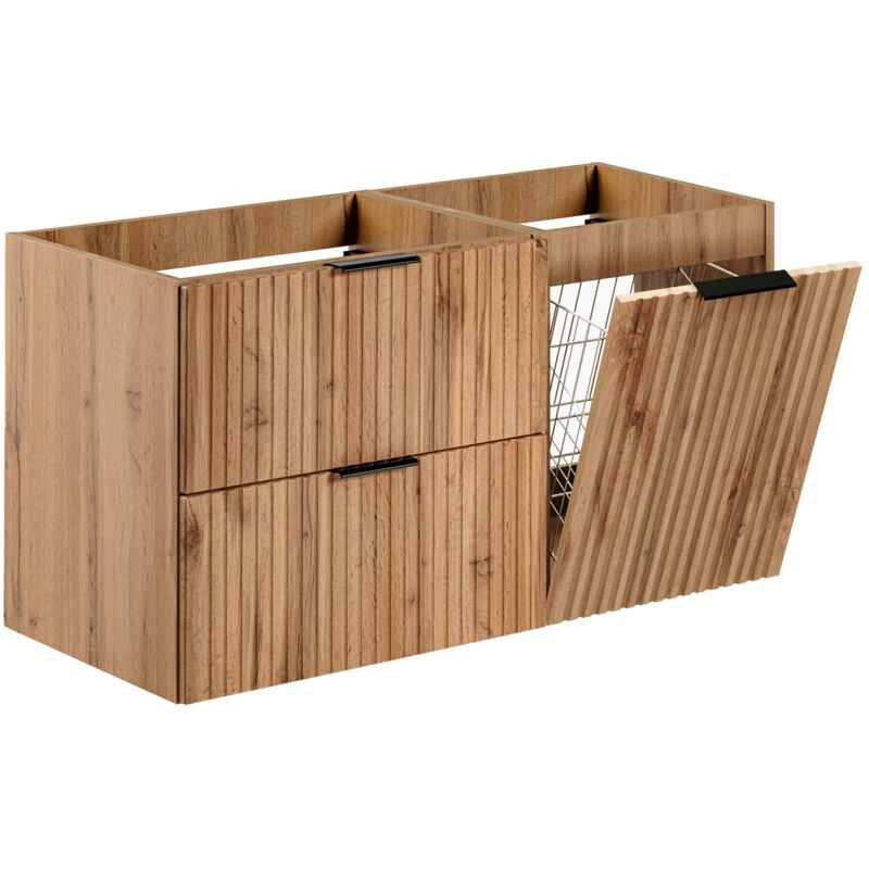 Furnidea - Meuble suspendu sous vasque avec panier à linge ADEL CHÊNE 100 cm - 2 tiroirs - Façades rainurées