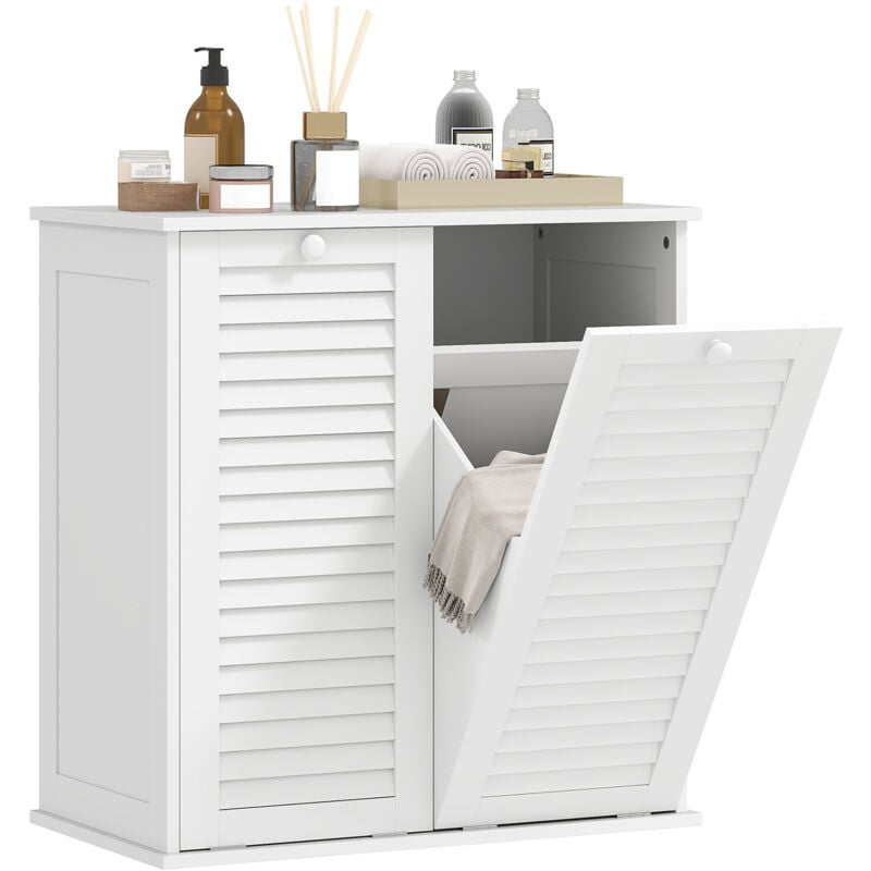 Sobuy - BZR161-W Armoire à Linge Meuble Bas de Salle de Bain Corbeille à Linge Meuble de Rangement avec 1 Compartiment et 1 Panier à Linge Amovible,