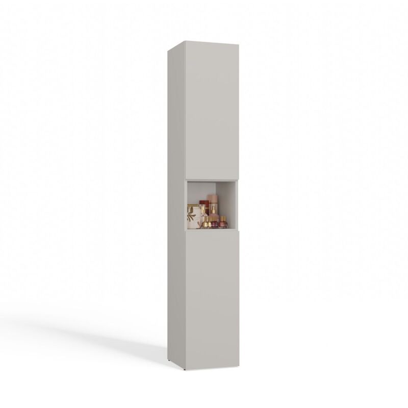 Hucoco - yana - Meuble salle de bain avec panier à linge - 31x30x174 cm - Colonne rangement sdb Blanc mat