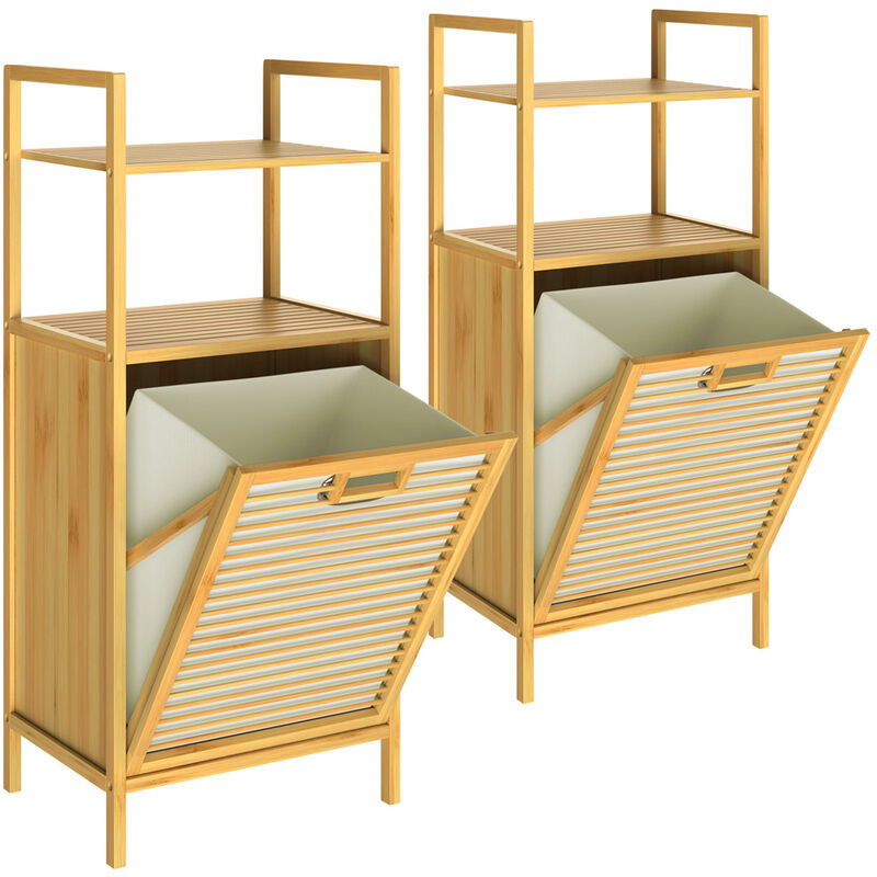 Casaria - 1x ou 2x Meuble en bambou avec étagères panier à linge intégré 36L Meuble de rangement salle de bain 2x