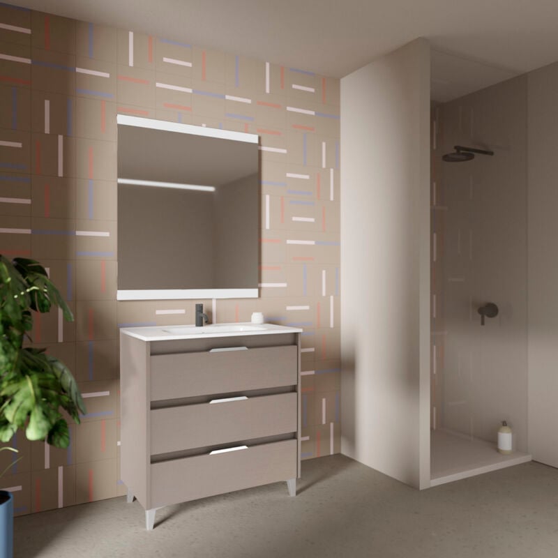 Amizuva - suki 80 Meuble simple vasque avec trois tiroirs, effet Fumé sablé Il comprend la vasque en céramique. (Sans miroir)