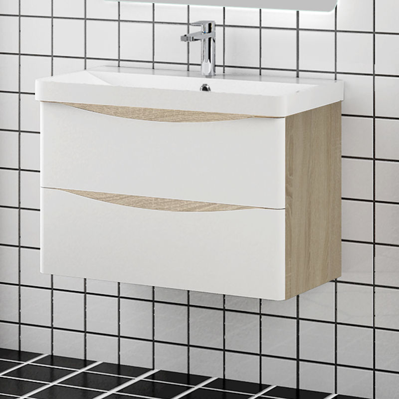 Aica Sanitaire - Meuble salle de bain 80x39.5x50cm 2 tiroirs meuble suspendu avec la vasque couleur blanc et bois