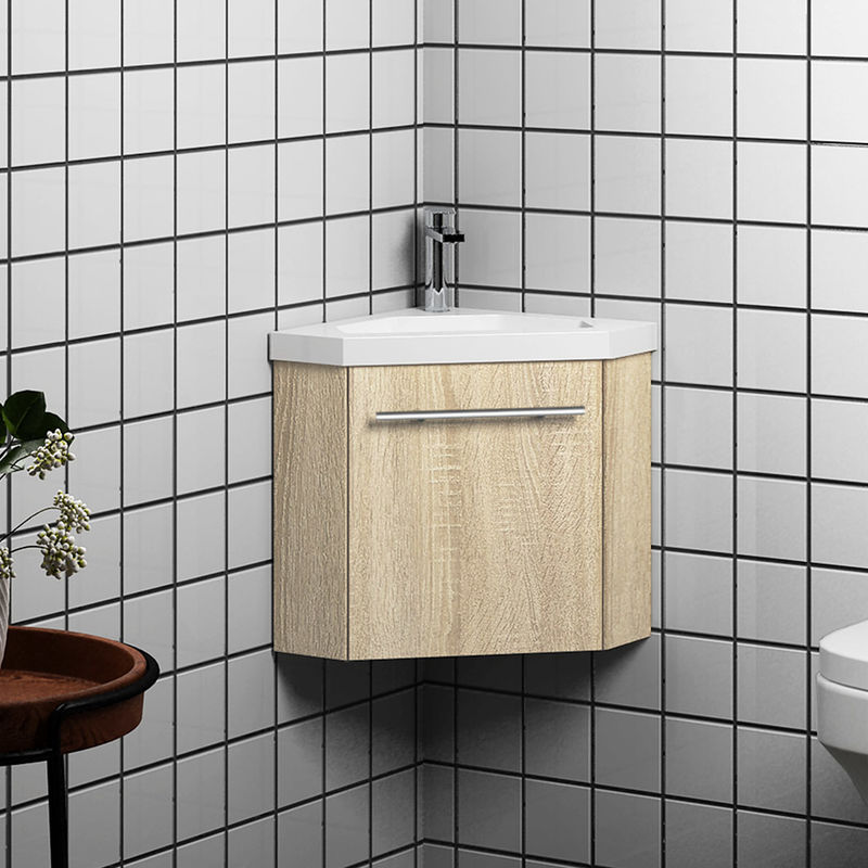 Aica Sanitaire - Meuble salle de bain d'angle 39.5x39.5x42cm 1 porte meuble suspendu avec la vasque couleur bois