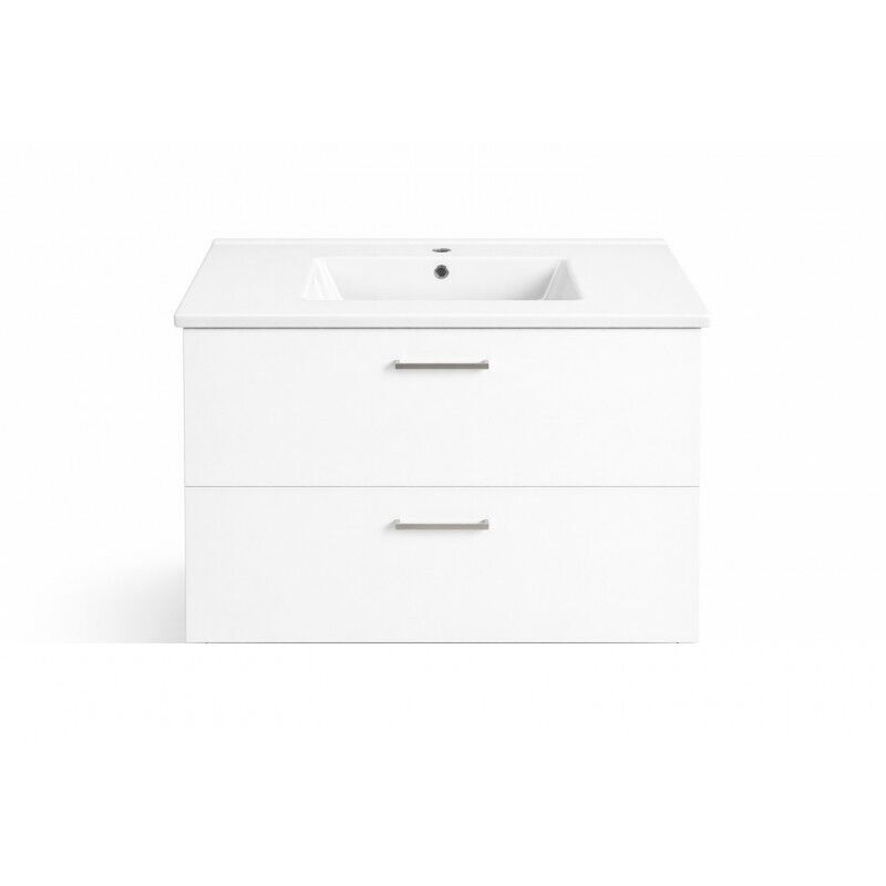 Meuble avec Vasque de Salle de Bain L80cm SANIJURA Equinox 2 Tiroirs Laqué Blanc avec Vasque Céramique - 575012-551050