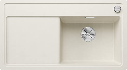 BLANCO NAYA 5 Silgranit blanc doux, type d'encastrement : encastrement par le haut, sans commande de ventilation, meuble bas de 50 cm, grand volume de bassin pour une utilisation optimale, surface
