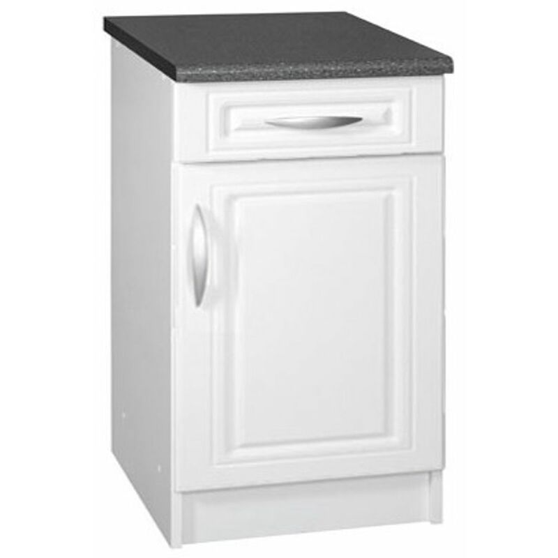 Tendencio – Meuble de cuisine bas 50 cm – 1 porte, 1 tiroir, 1 étagère – Bois mélaminé blanc – Optimise l'espace de rangement