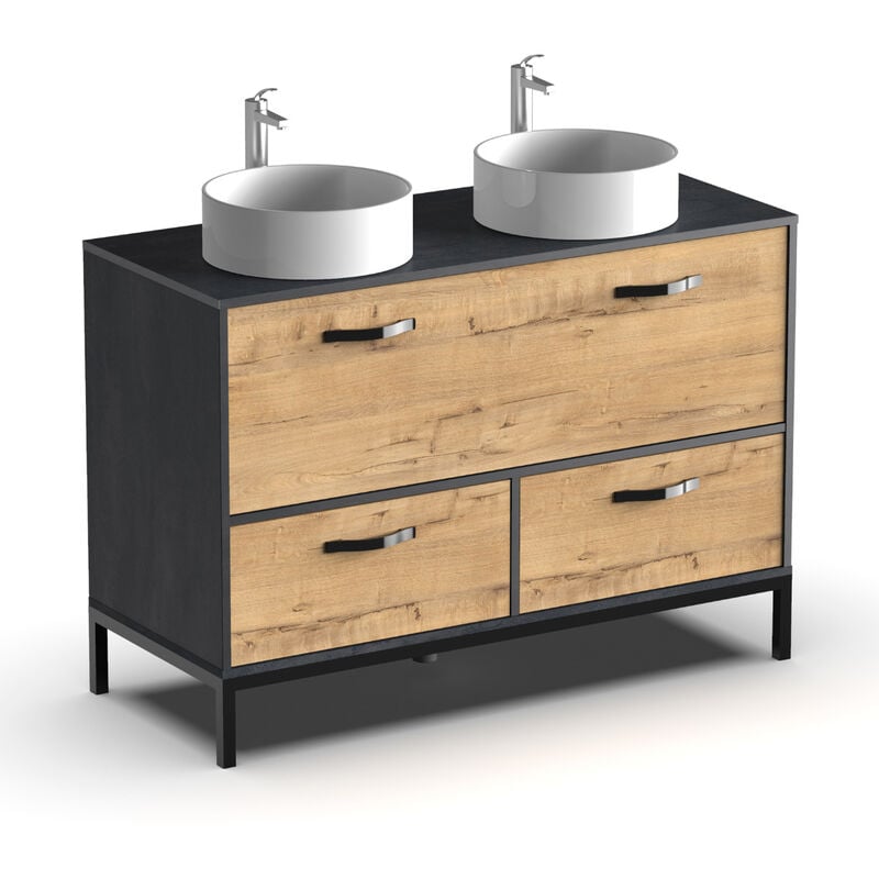 Pegane - Meuble vasque pour salle de bain coloris imitation marbre, chêne - Longueur 120 x Profondeur 50 x hauteur 80 cm