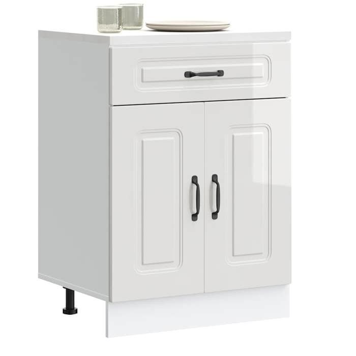 Meuble bas de cuisine avec plan de travail 1 porte + 1 tiroir coloris blanc brillant /chêne canadien