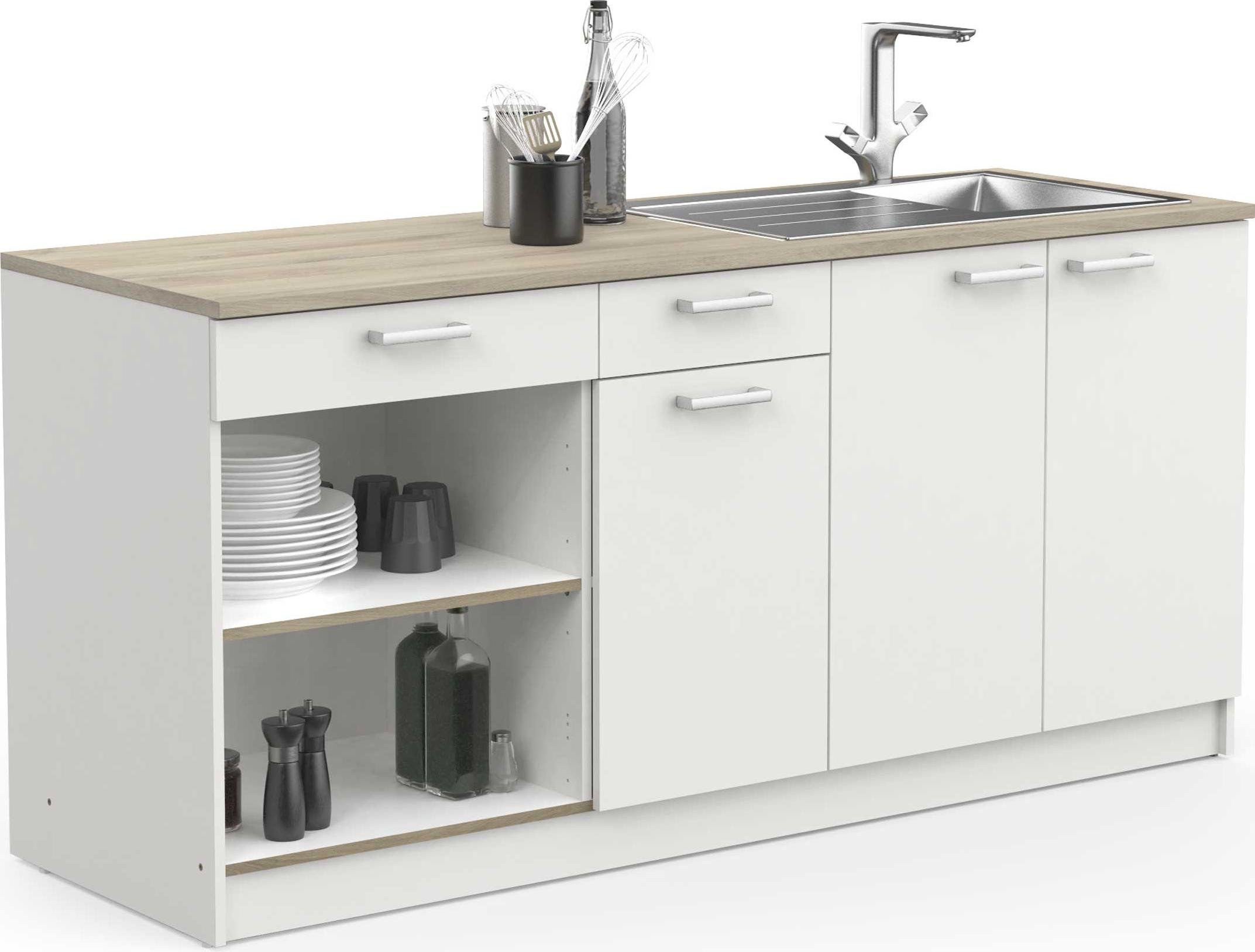 Meuble bas de chef avec emplacement pour évier, four et plaque de cuisson - Chêne Kronberg/Blanc mat