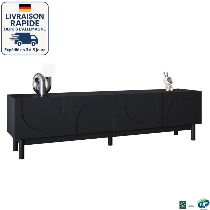 Meuble TV noir mat avec rangement 4 portes et 2 étagères meuble bas salon/chambre 169×34×455 cm noir