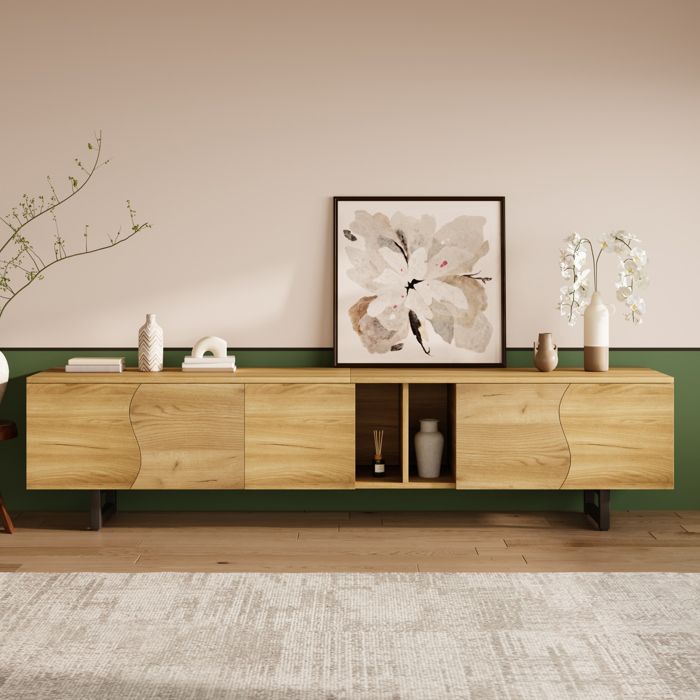 Meuble TV - Merax - Bois et Noir - 170 x 40 cm - Portes - Tiroir et Étagères - Meuble Bas pour Salon
