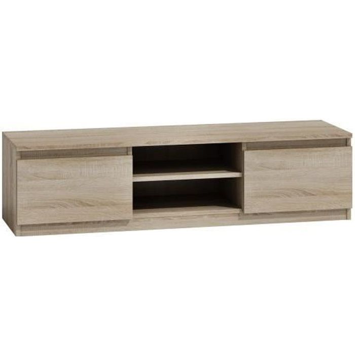 Meuble tv 2 tiroirs 2 niches 160x40x48 cm, meuble télé bas salon compatible 65'', mdf finition noyer