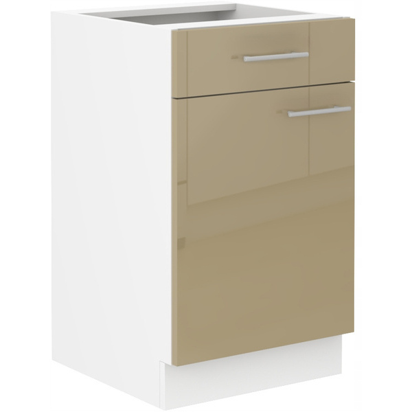 Meuble bas de cuisine avec 1 tiroir et 2 casseroliers GoodHome Stevia crème brillant L. 60 x H. 72 cm