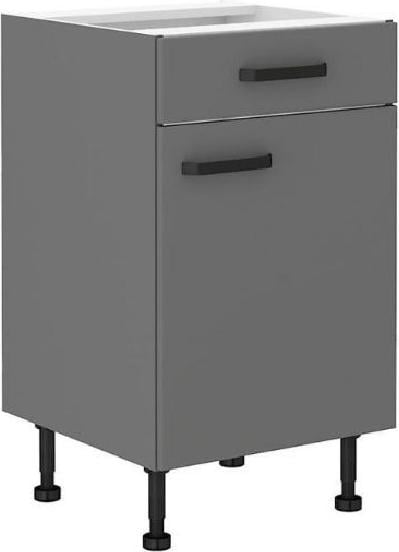 Meuble bas de cuisine avec 1 tiroir et 2 casseroliers GoodHome Stevia gris mat L. 60 x H. 72 cm