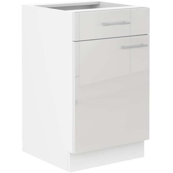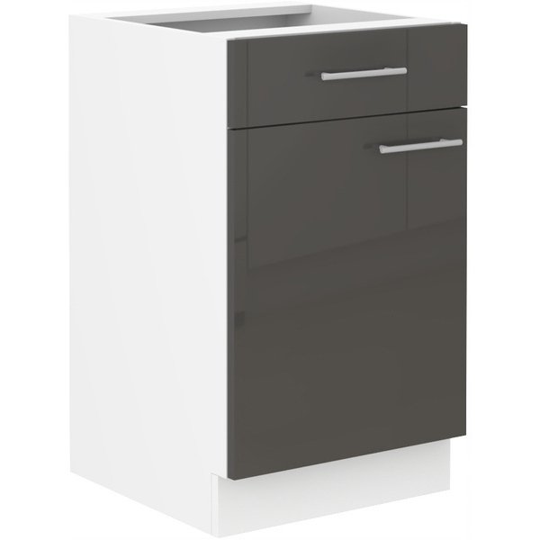 Meuble bas de cuisine avec 1 tiroir et 2 casseroliers GoodHome Stevia gris brillant L. 60 x H. 72 cm