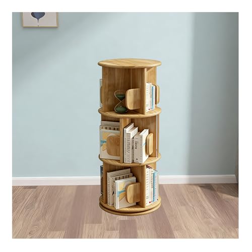 Bois Bibliothèque Rotative à 360 degrés,2/3/4/5 Niveaux Bibliotheque Rotative étagère de Rangement,Meuble de Rangement Autoportant pour Maison Bureau Salon Chambre,B,3 Tier 15.7×15.7×38.5in