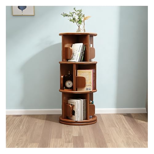 Bois Bibliothèque Rotative à 360 degrés,2/3/4 Niveaux Bibliotheque Rotative étagère de Rangement,Meuble de Rangement Autoportant pour Maison Bureau Salon Chambre,Walnut Color,3 Tier