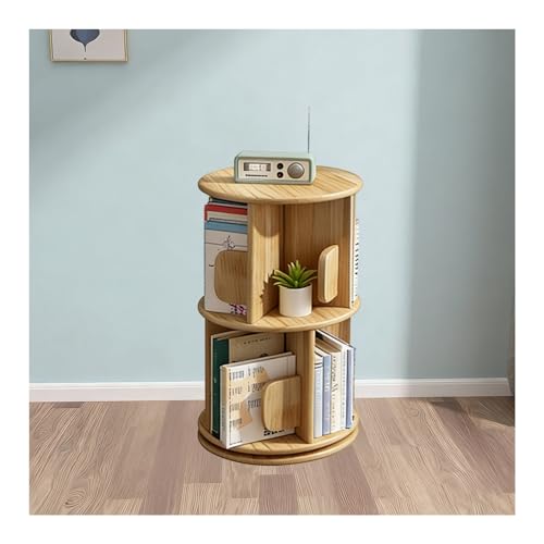 Bois Bibliothèque Rotative à 360 degrés,2/3/4 Niveaux Bibliotheque Rotative étagère de Rangement,Meuble de Rangement Autoportant pour Maison Bureau Salon Chambre,Beechwood Color,2 Tier