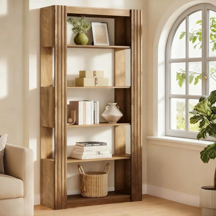 Bibliothèque haute avec armoire de rangement, étagère échelle moderne ouverte, meuble d'affichage mural, bibliothèque pour salon, chambre, bureau à domicile