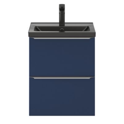 Meuble vasque suspendu faible profondeur bleu nuit mat l.50 cm Imandra + plan vasque noir céramique Nira, GoodHome