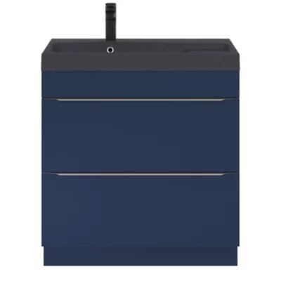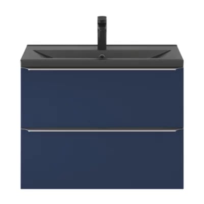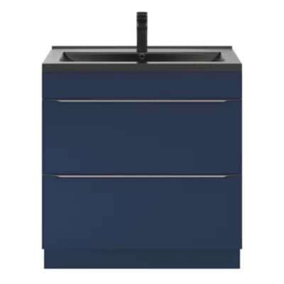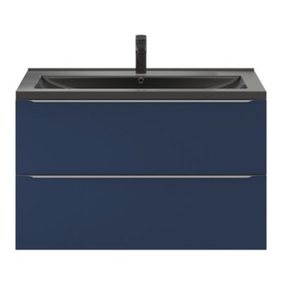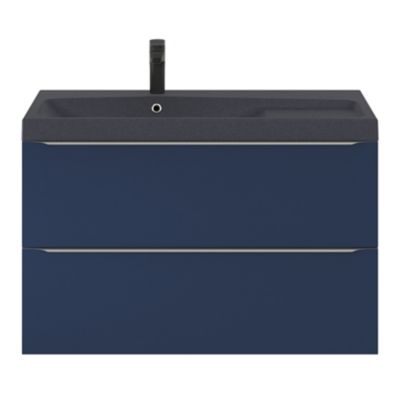 Meuble vasque suspendu bleu nuit mat l.80 cm Imandra + plan vasque noir résine Mila, GoodHome