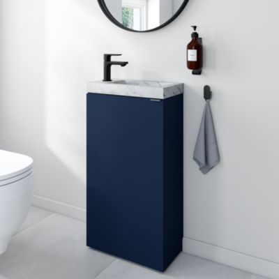 Meuble lave-mains à poser bleu nuit mat l.44 cm Imandra + plan vasque effet marbre blanc, GoodHome