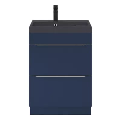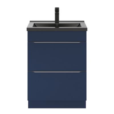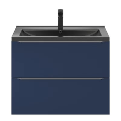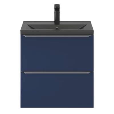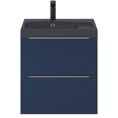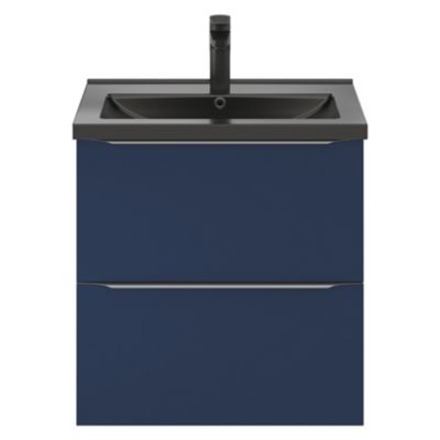 Meuble vasque suspendu bleu nuit mat l.60 cm Imandra + plan vasque noir résine Mila, GoodHome