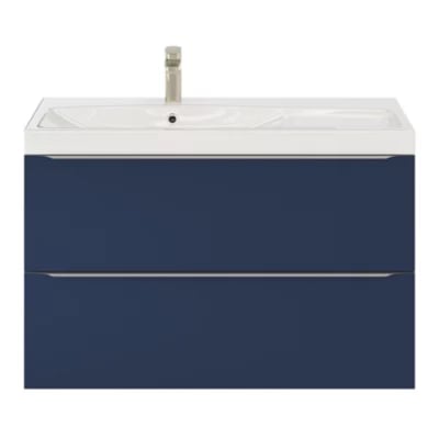 Meuble vasque suspendu bleu nuit mat l.100 cm Imandra + plan vasque blanc résine, GoodHome