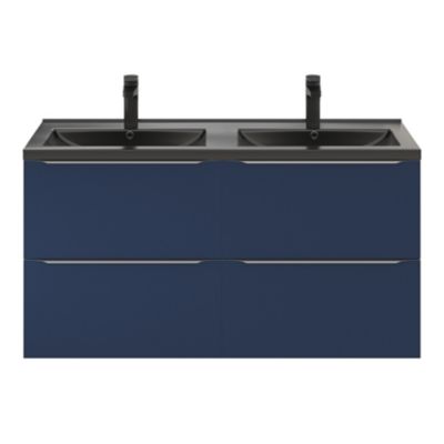 Meuble vasque suspendu bleu nuit mat l.120 cm Imandra + plan double vasque noir résine Mila, GoodHome