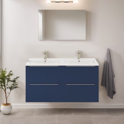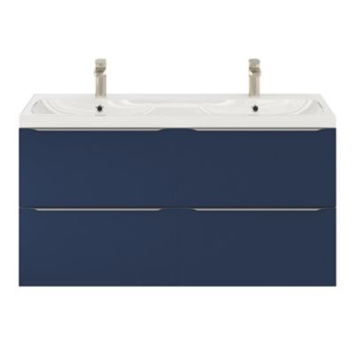 Meuble vasque suspendu bleu nuit mat l.120 cm Imandra + plan double vasque blanc céramique Nira, GoodHome